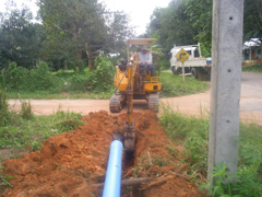 การวาง/เดินระบบประปาหมู่บ้าน เพื่อเป็นการกระจาย/จ่ายน้ำเพื่อการอุปโภค และ บริโภค แก่ชุมชน/บ้านพักอาศัย